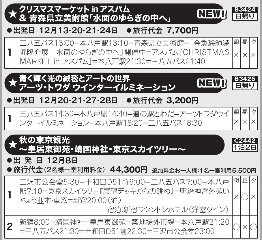 - デーリー東北新聞に三八五バスツアー旅行の「広告」が掲載されました。